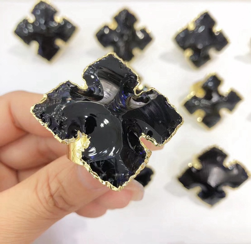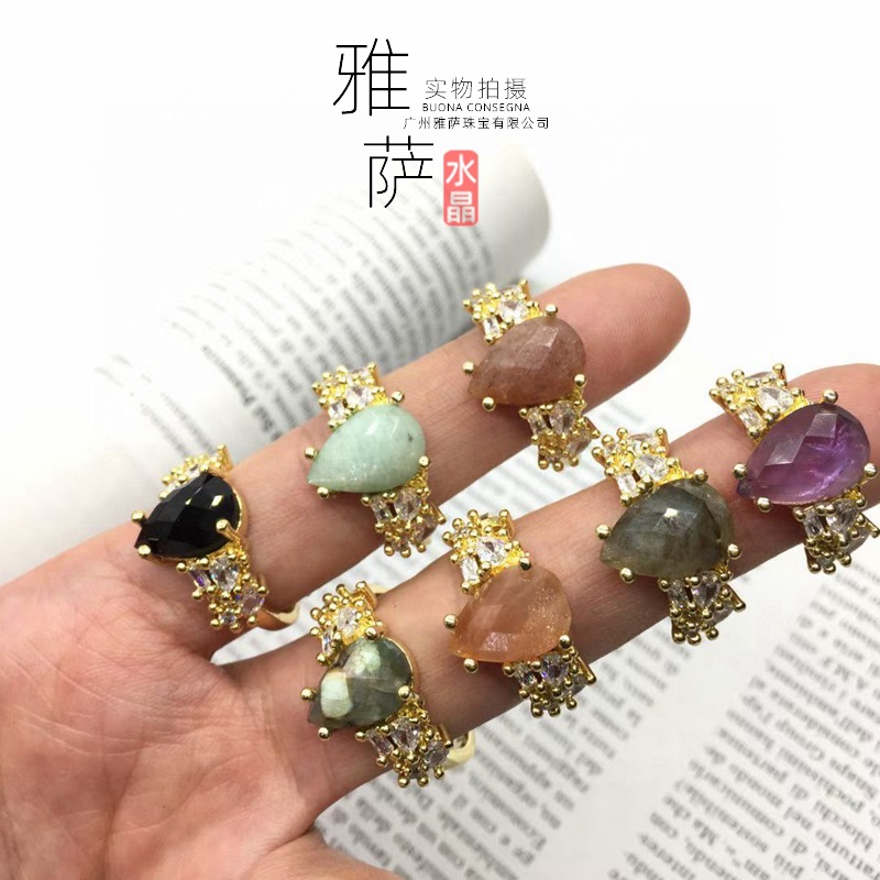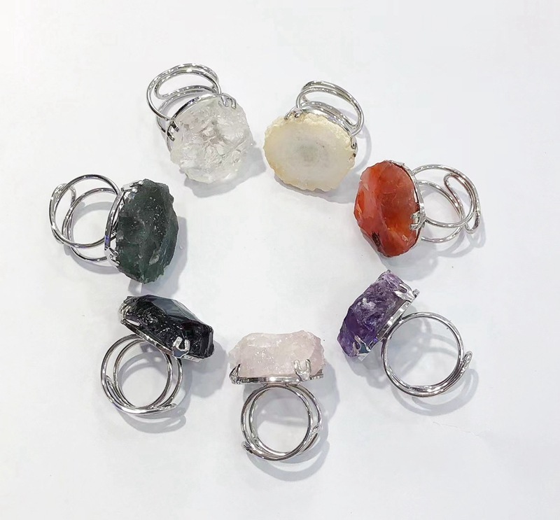 クロスボーダーwishアクセサリー欧米カップル瑪瑙晶洞晶芽指輪手叩き石手飾り紫水晶指輪