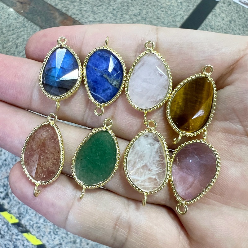 欧米のペンダントは随行して不規則な水晶の銅の金メッキの辺の双環の引き伸ばして石を引き延ばしてクロスボーダーの卸売りを飾ります。