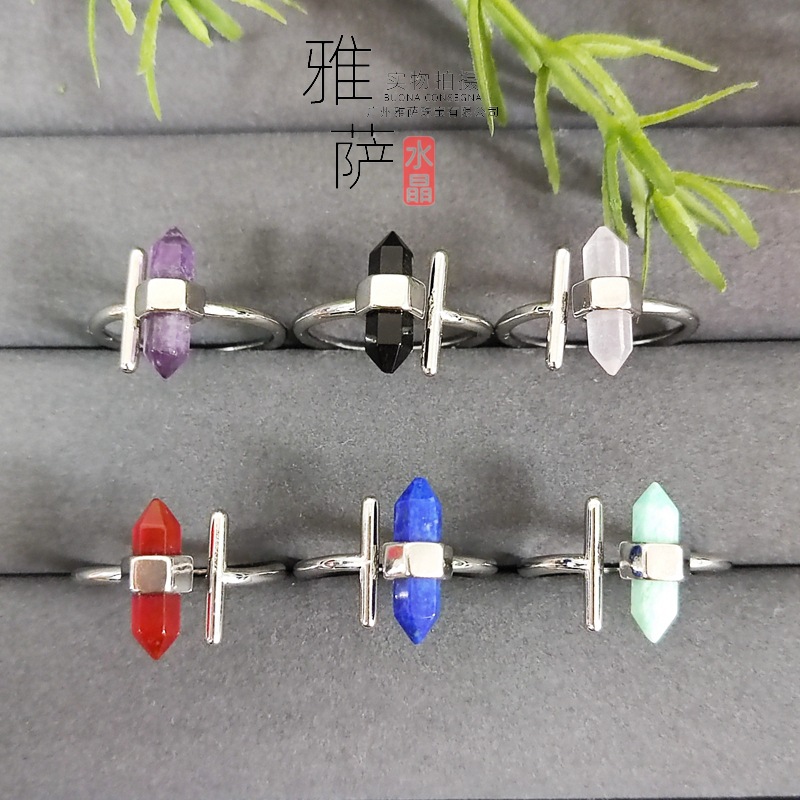 欧米の天然の青金の指輪の六角柱の指環の白い水晶の石の手の装飾の気質は気前が良くて簡単です。