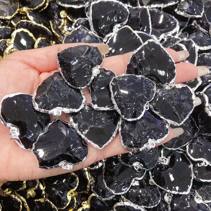 クロスボーダー天然石インド輸入手叩き黒曜石樹葉形アクセサリー手作りペンダントクロスボーダー卸売り