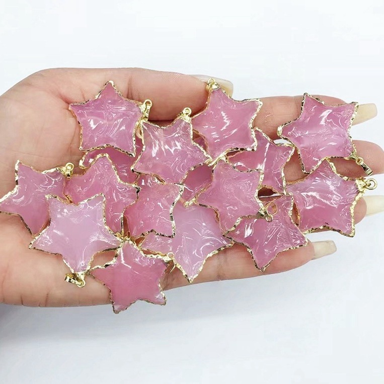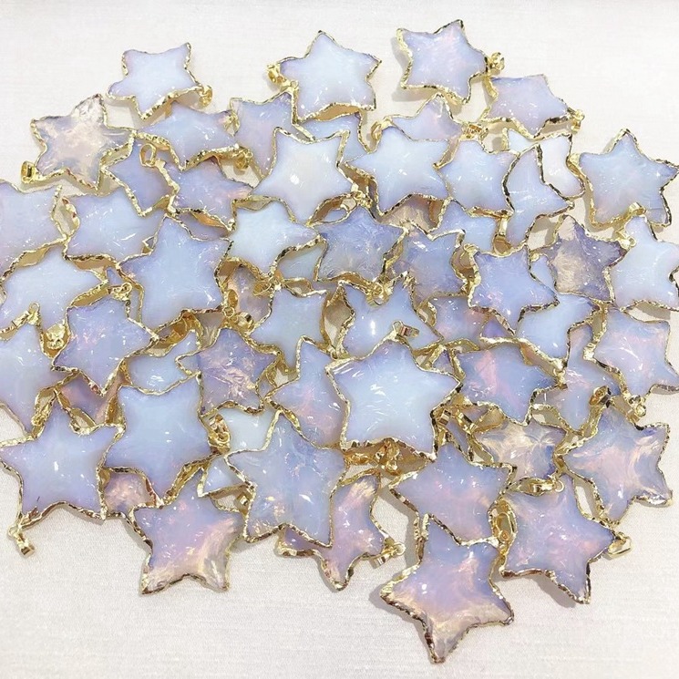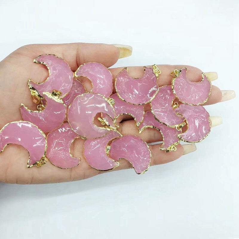 天然石白水晶粉晶ペンダント三日月形緑東陵白松石電気金メッキ単孔diyアクセサリー
