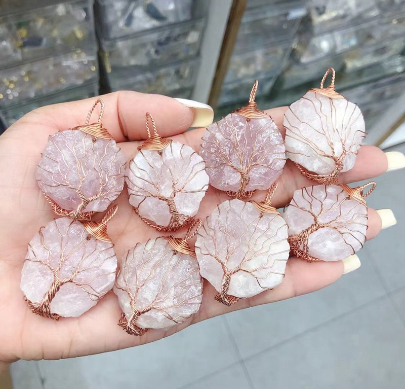アマゾンの手作りツイストラインは不規則な天然石の白い水晶のペンダントの糸の知恵の木の白い水晶に随行します。