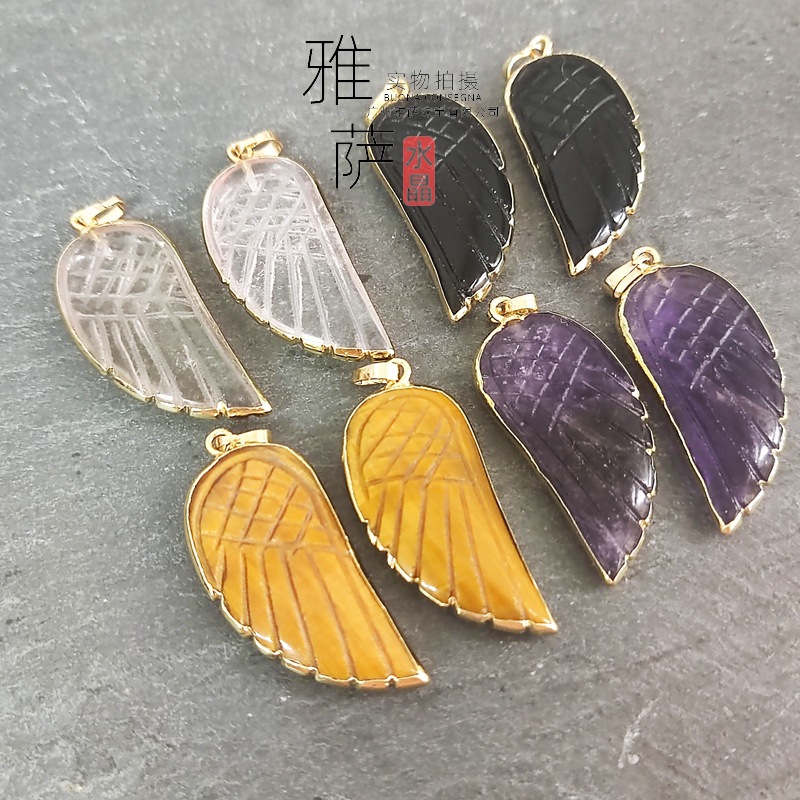 新商品の個性的な自然水晶黒曜石の羽の形のペンダントやネックレスの装飾品の卸売り