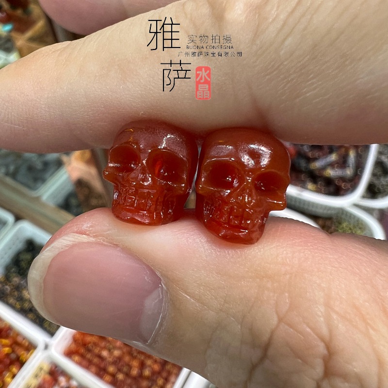 欧米の天然紅瑪瑙彫刻スカルdiyアクセサリー彫刻部品アクセサリークロスボーダー卸売り