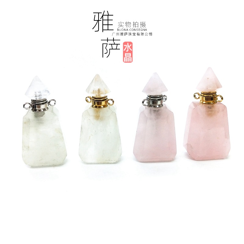 雅サジュエリー天使粉水晶切断面香薫瓶ネックレスステンレス金属白水晶空瓶卸売り