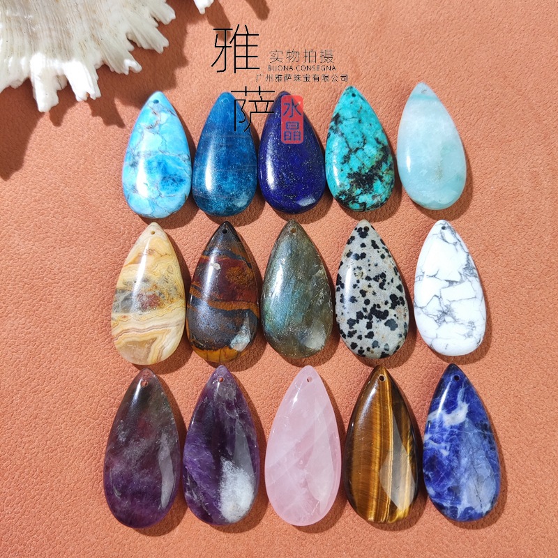 水晶研磨水滴ペンダントdiy部品粉水晶ペンダント長石紫水晶部品卸売り