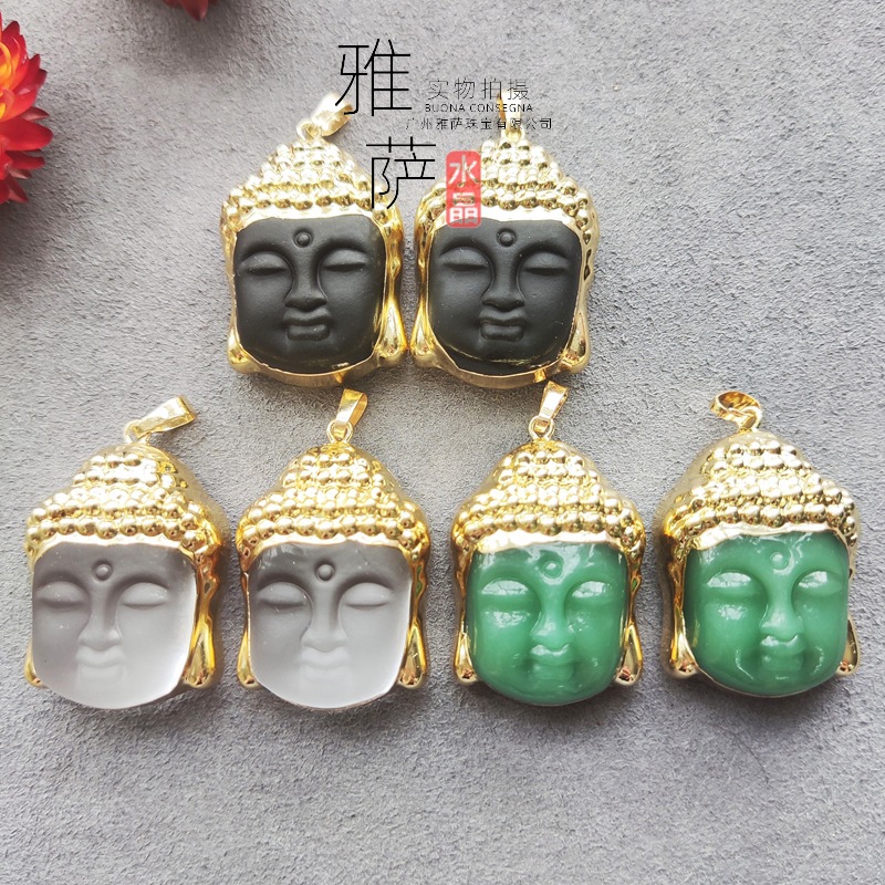 卸売り天然水晶白水晶メッキ真金包辺釈迦摩尼ペンダント黒曜石彫刻アクセサリー
