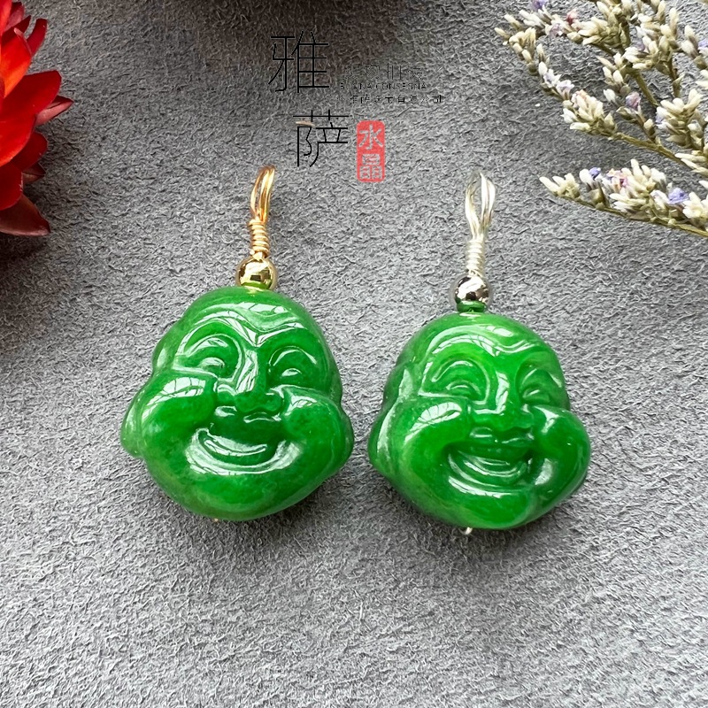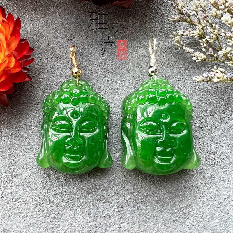 雅サジュエリー乾青玉水晶彫刻顔ペンダント緑水晶セーターチェーンアクセサリー卸売り