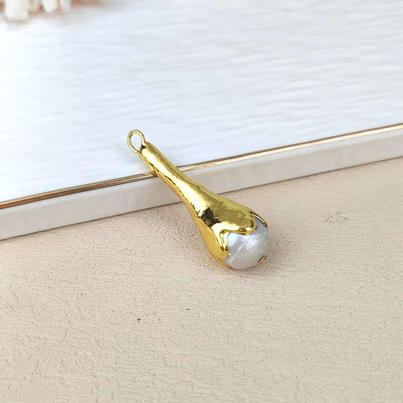 真金メッキシンプル淡水真珠円形ビーズペンダントdiy手作りネックレスイヤリングブレスレットアクセサリー