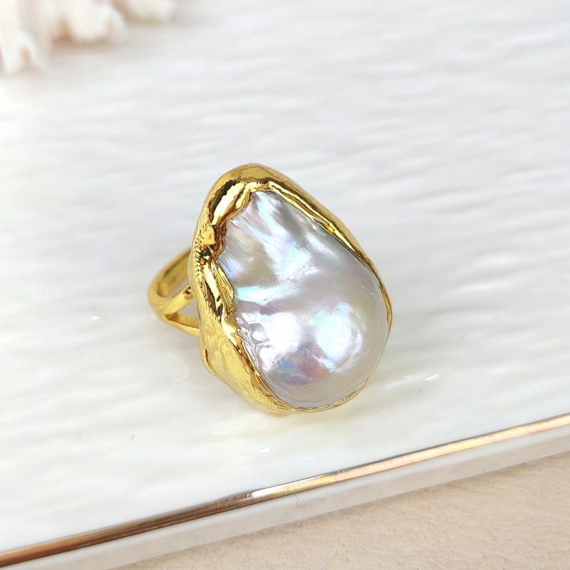 淡水真珠の指輪は女子学生の活口の指のリングに合わせて食事の指の指輪を飾ってシンプルな復古の本物の金の指輪をめっきします。