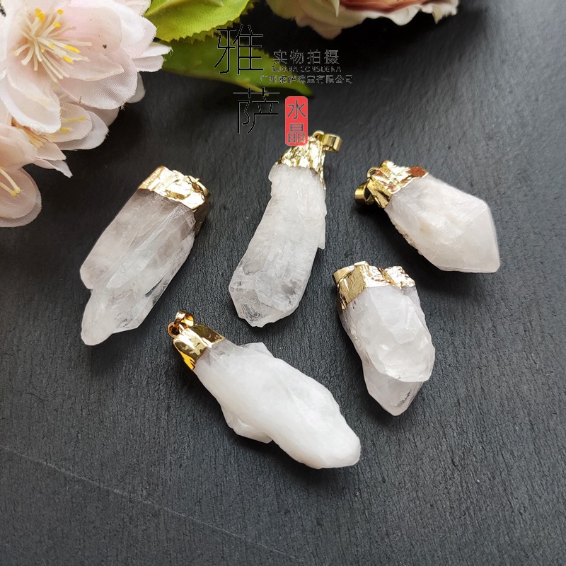 雅サジュエリー天然白水晶随行不規則ペンダント真金メッキ縁水晶セーターチェーン卸売り