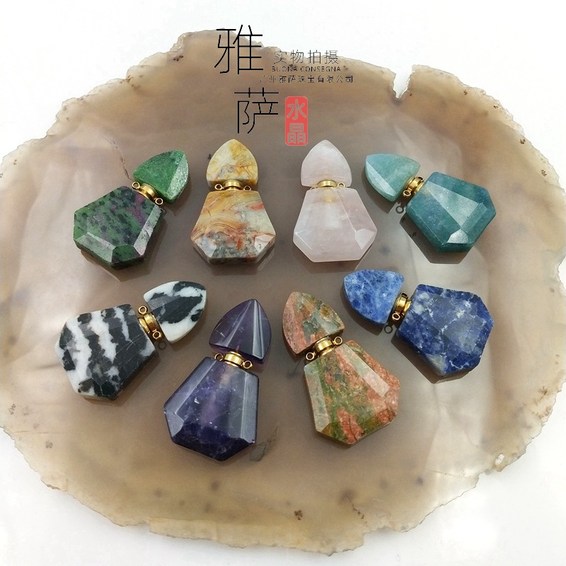 新品ヤサジュエリー天然花緑宝台形香水瓶不規則青紋はアロマボトルのペンダント卸売りです。