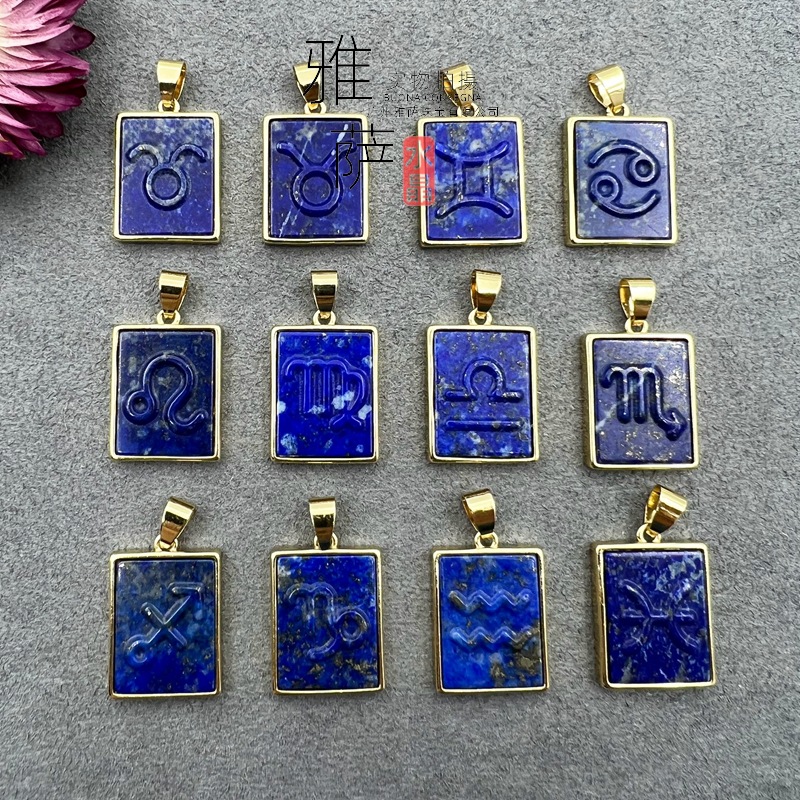 雅サジュエリー天然ラピスラズリ獅子座レリーフ12星座メッキ真金縁ペンダント誇張アクセサリー