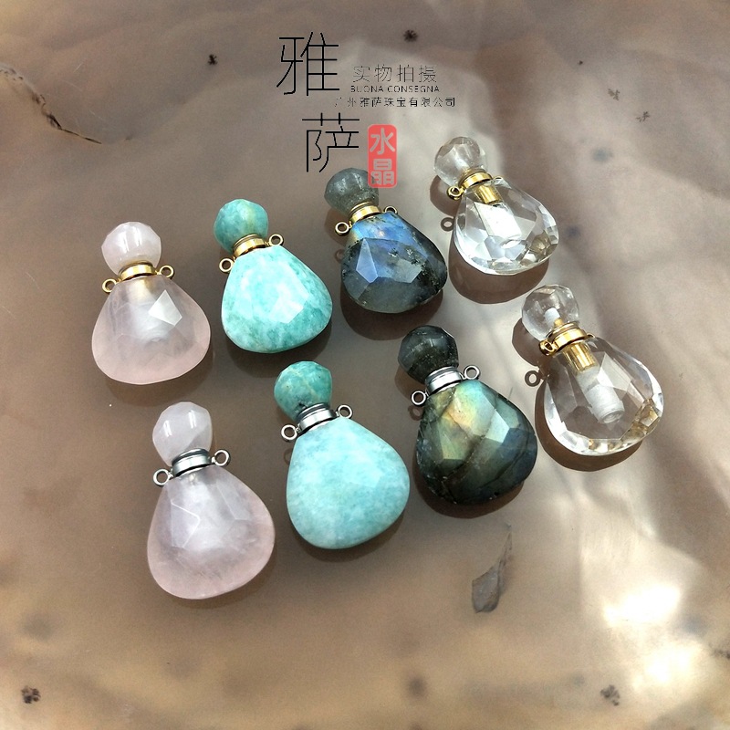 新商品ヤサジュエリー天然長石香水瓶手作りビーズチェーンカラー蛍水晶アロマボトル粉晶卸売り