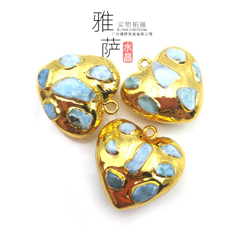 雅サジュエリーハート型メッキ真金愛アマゾナイト通孔ペンダントハート型アクセサリー部品材料卸売り