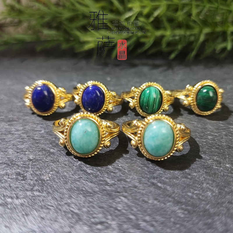 欧米のレトロなアマゾンの石の指輪は18kの金メッキの指輪をめっきしてピーコックの石の開口の指輪のinsの指輪を象眼します。