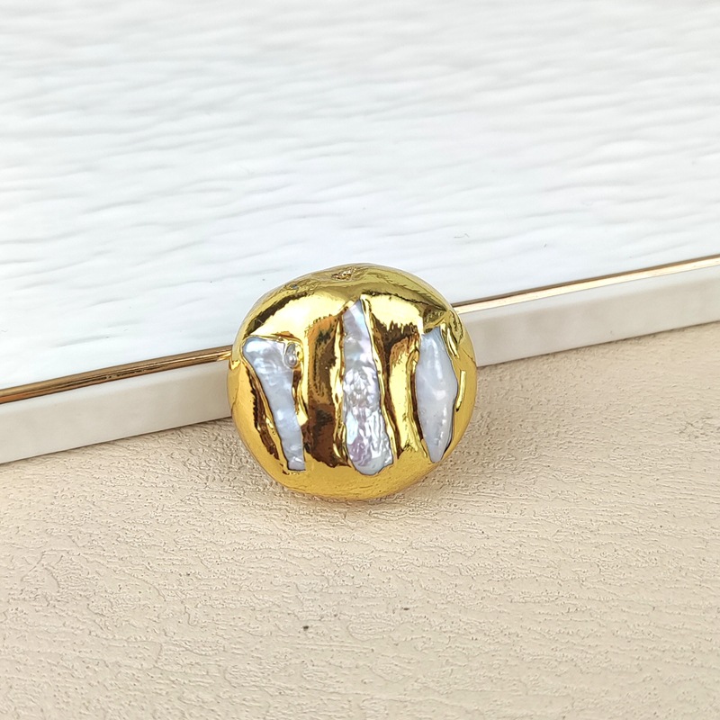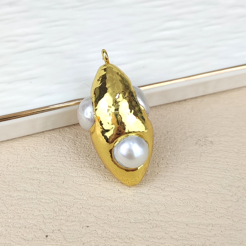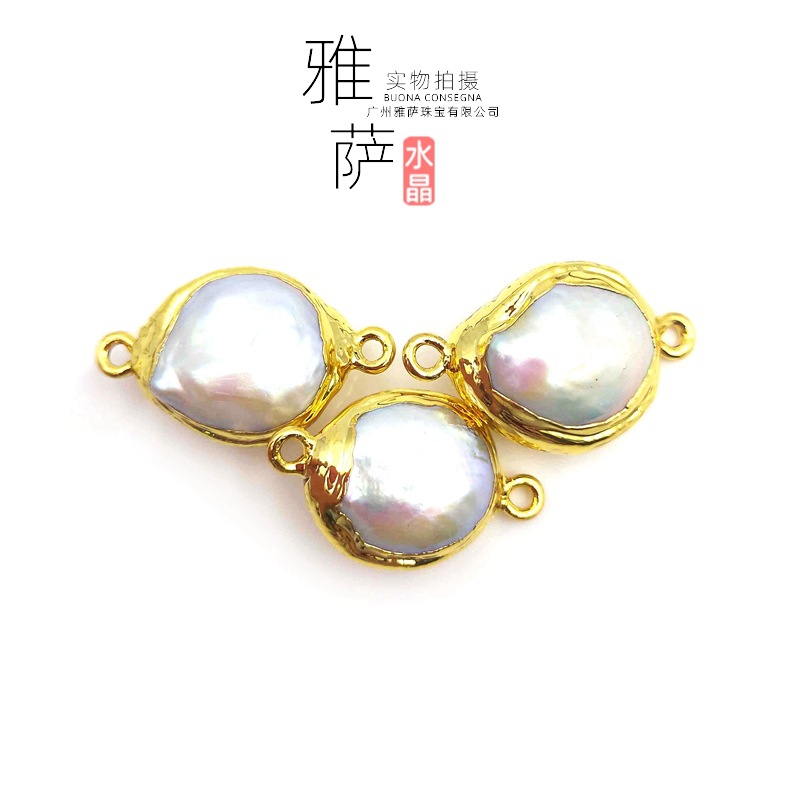 雅サジュエリー円形真珠通孔ペンダント金色メッキ真金真珠diyビーズペンダント卸売り