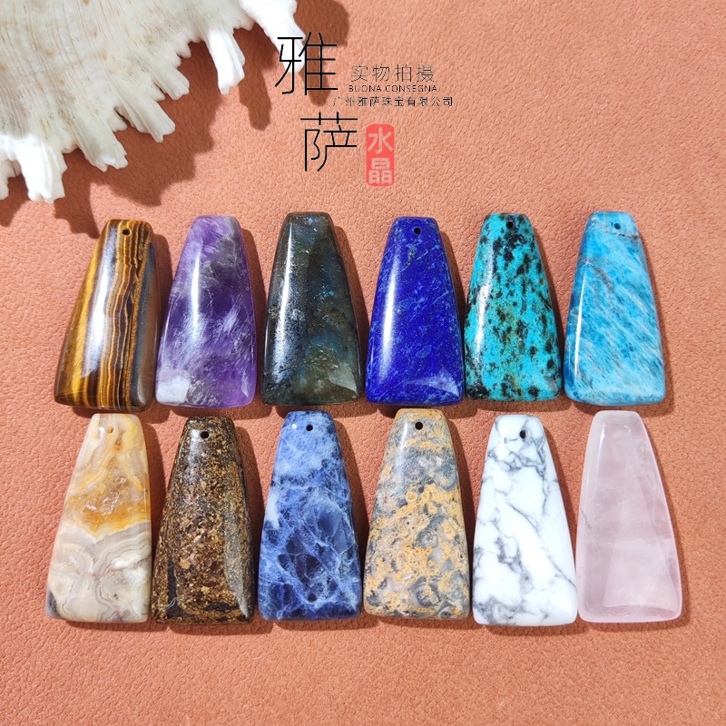 ヤッサジュエリー虎眼石台形ペンダント白松ペンダント紫水晶原石何もないブランドスライス水晶