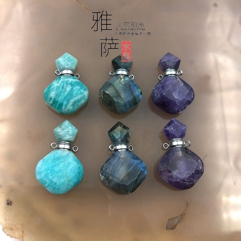 新品ヤサジュエリーアマゾンクリスタル香水瓶紫水晶アロマボトル精油ボトル空ボトルペンダント卸売り