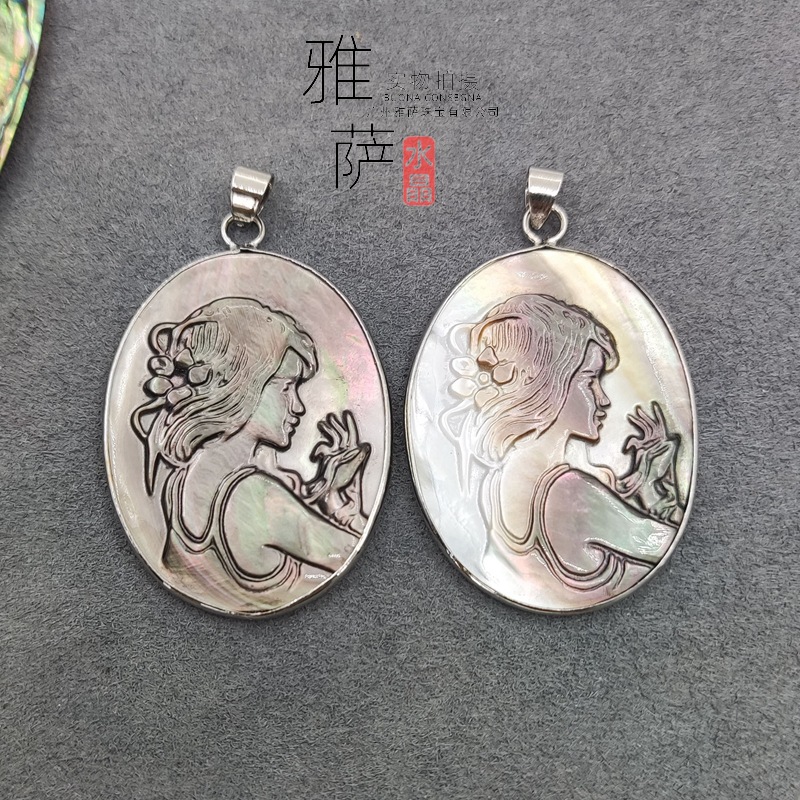 天然貝殻彫刻貝殻彫刻アクセサリー透かし彫り美人図花びらペンダントアクセサリー卸売り