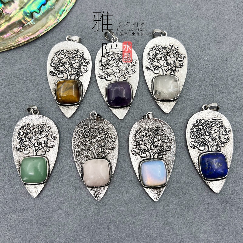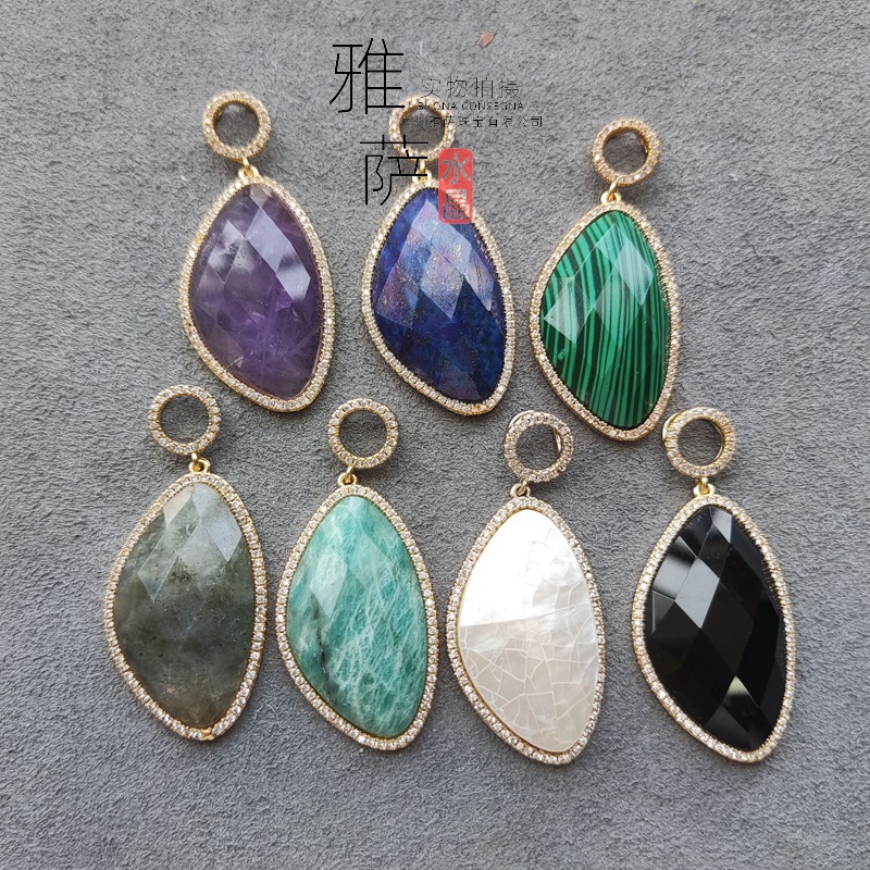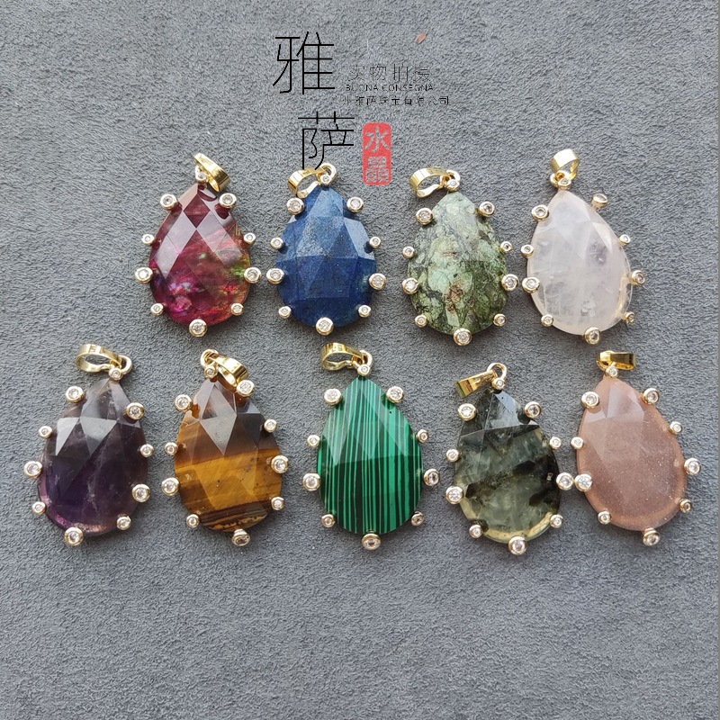 天然紫水晶ペンダント孔雀石ネックレスペンダント水滴形虎眼石ペンダント部品卸売り