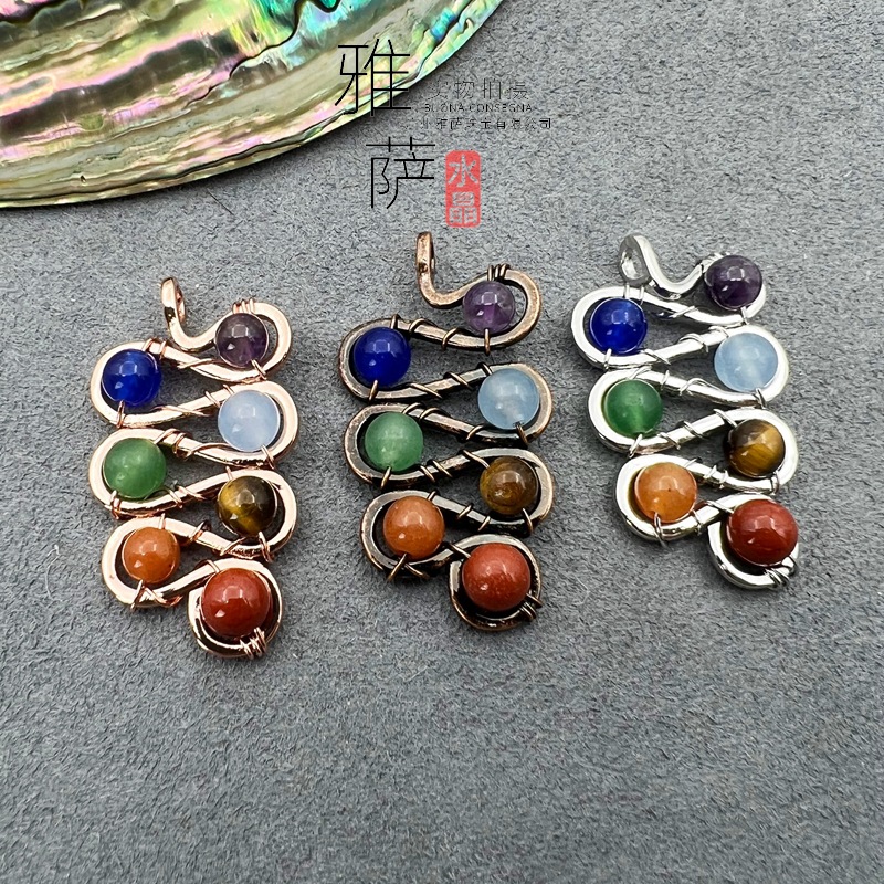 7チャクラ編み六角柱ヨガ石車掛フリンジペンダント虹柱天然水晶古風ペンダント