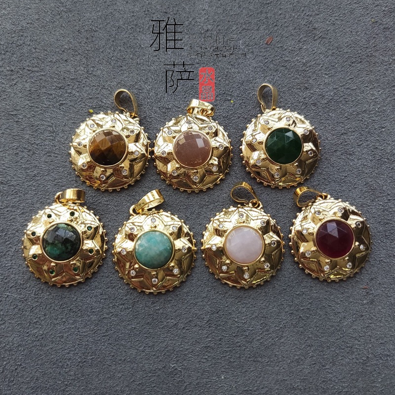 雅サジュエリー水晶玉モザイク円形ペンダント欧米クロスボーダー粉晶ネックレスアクセサリー卸売り