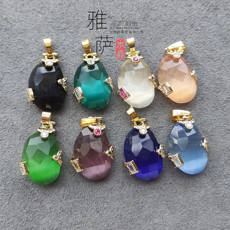 女性のペンダントの新型合成水晶のペンダントは皓石のペンダントの青い緑の水晶の部品のアクセサリーの卸売りを象眼します。
