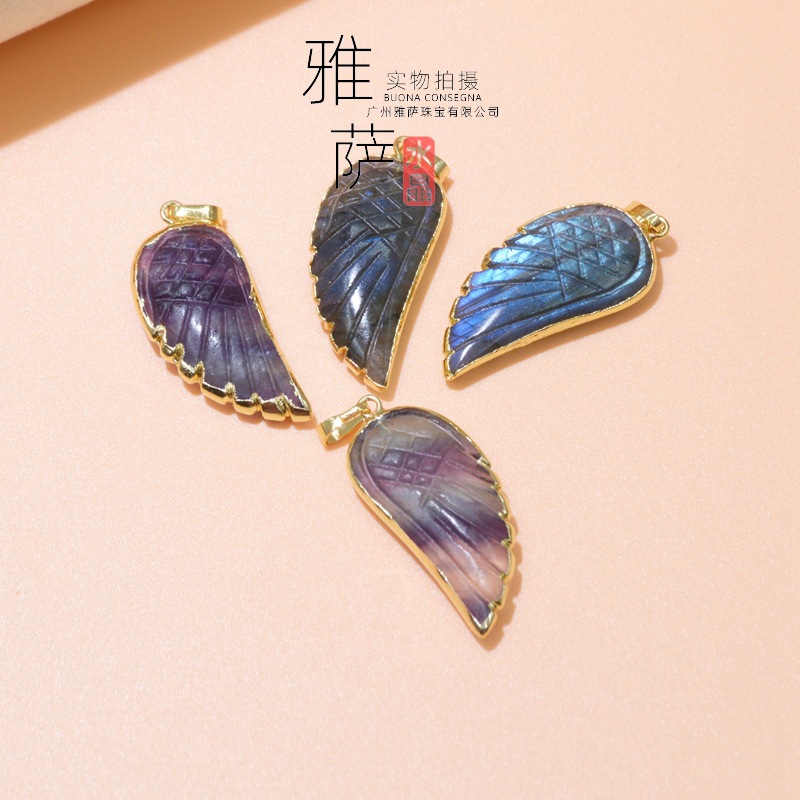 クロスボーダーの外国貿易の新商品の供給源の天然の長い石の翼のペンダントの女性の天使の翼の色の蛍の羽のアクセサリー
