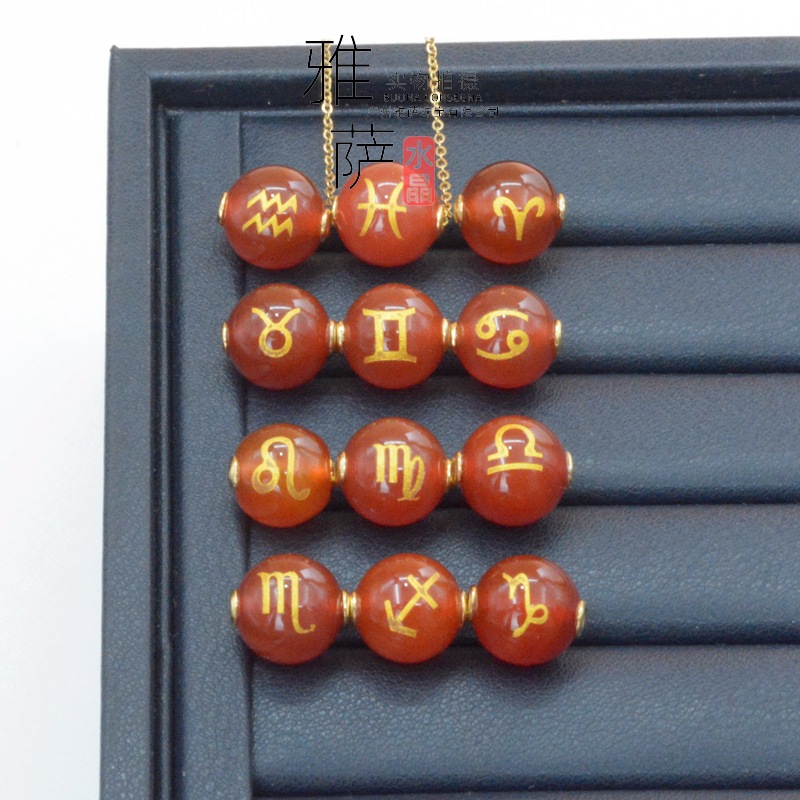 欧米wishアマゾン紅瑪瑙12十二星座ネックレスins星座鎖クロスボーダー玉ネックレス