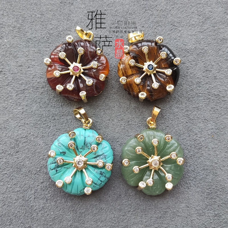 欧米の創意5弁の花のネックレスの個性の緑松石のペンダントの花の鎖の鎖の虎の目の石は卸売りを飾ります。