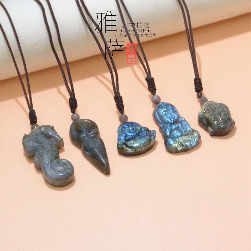 新商品の閃光石海馬動物の鳥の口のペンダントは虎の頭の天使のクモの小動物の卸売りを彫刻します。