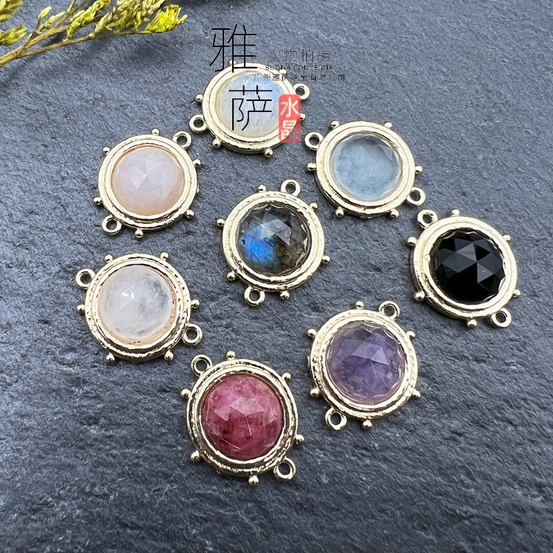 水晶円形ペンダント長石アクセサリーDIY紫水晶復古宝石ネックレス卸売り