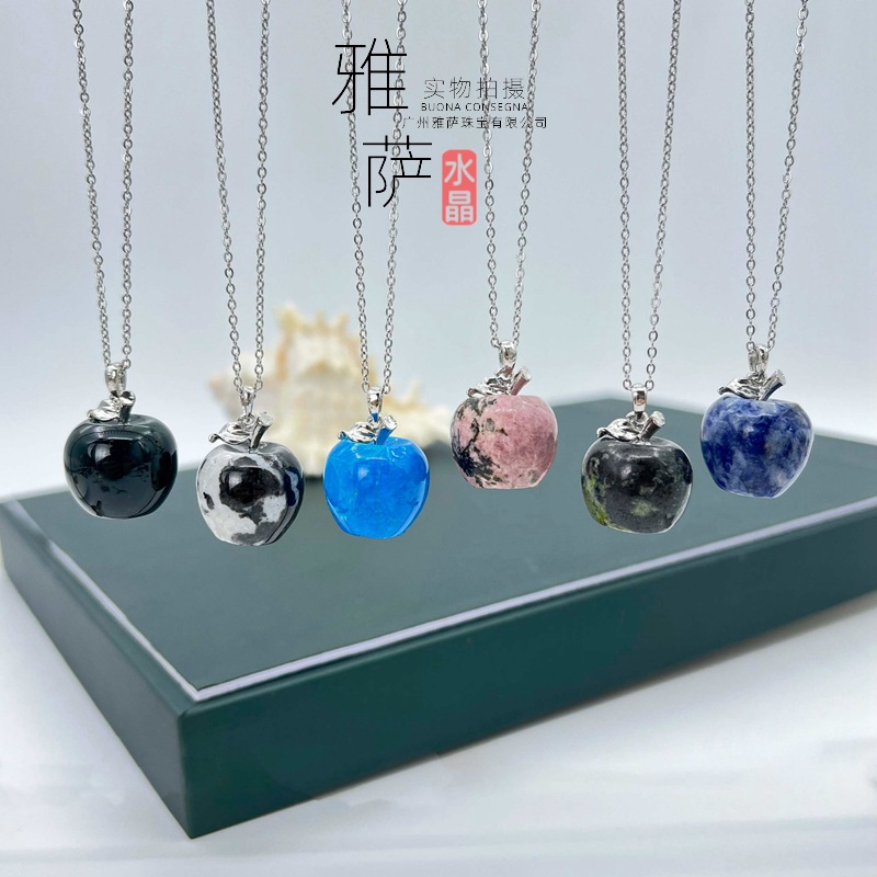 天然水晶アップルペンダントネックレス女性用欧米ファッションジュエリーアクセサリー卸売非対称デザイン