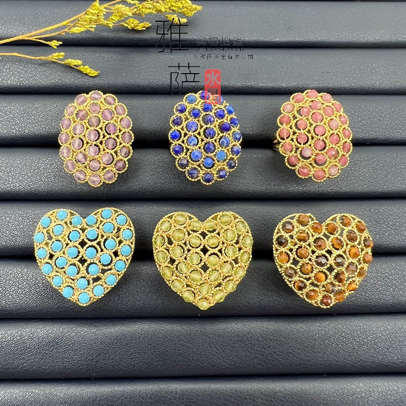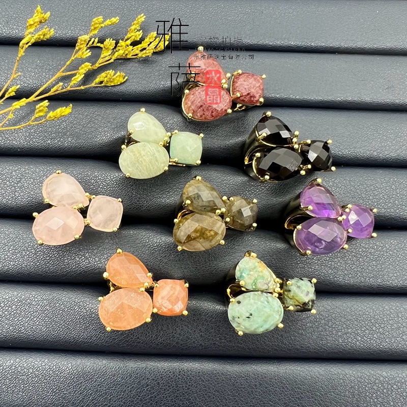 新商品天然水晶青金指輪紫水晶指環粉晶食指戒欧米クロスボーダーアクセサリー