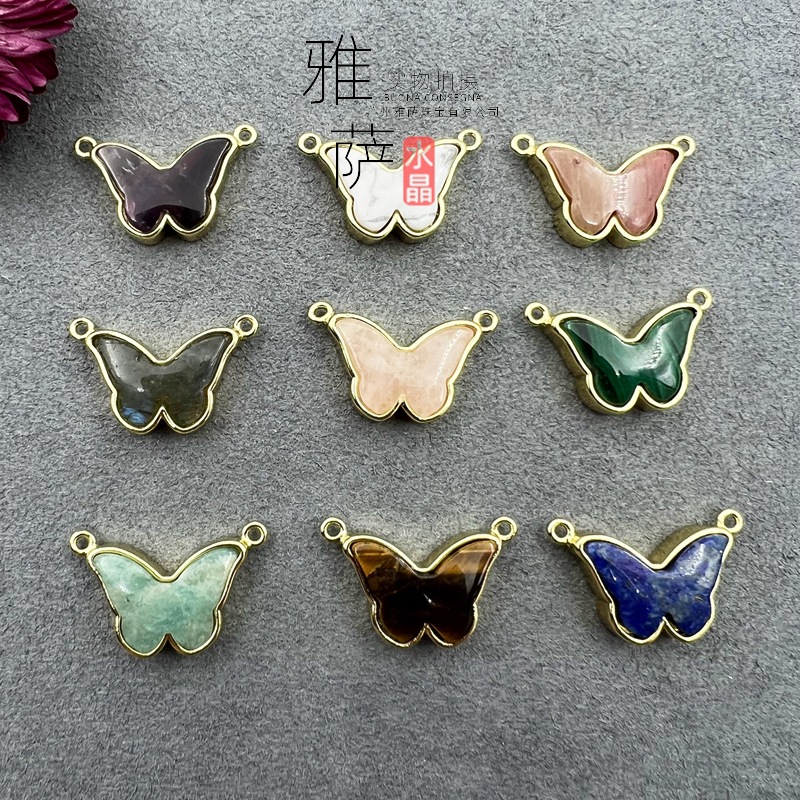 欧米の越境水晶の蝶のペンダントの女性の紫水晶の翼の部品のペンダントの蛍光石の蝶のネックレスの卸売り