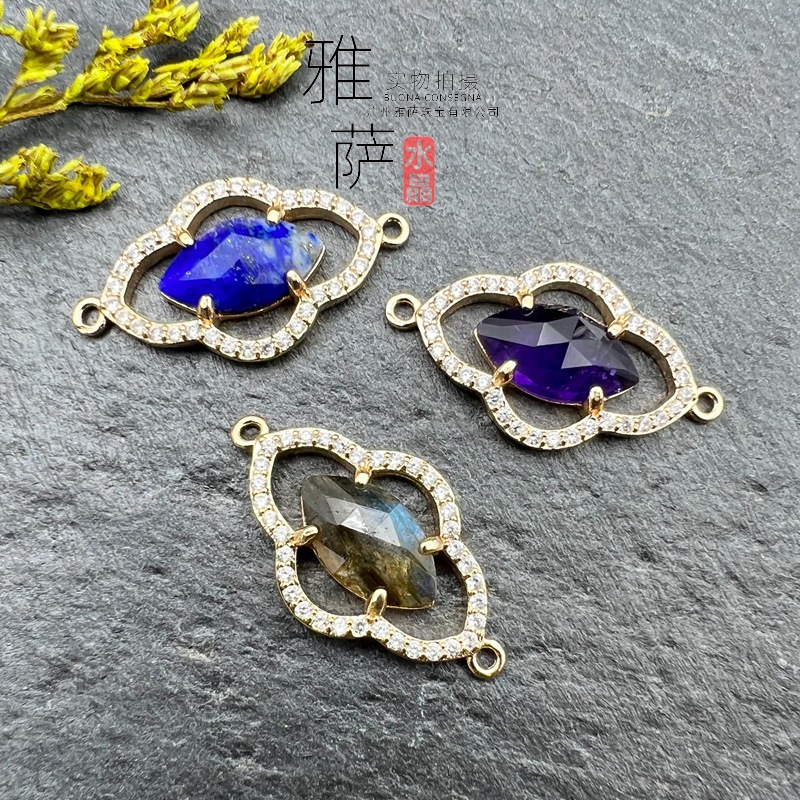 ペンダント卸売り銅金メッキ縁紫水晶ペンダント韓国版シンプル四葉草双ペンダントファッション