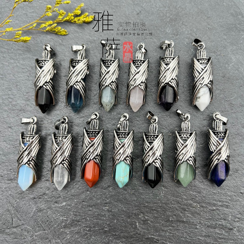 クロスボーダー大天使六角柱ペンダント紫水晶白水晶粉晶虎眼石アクセサリー六角柱卸売り