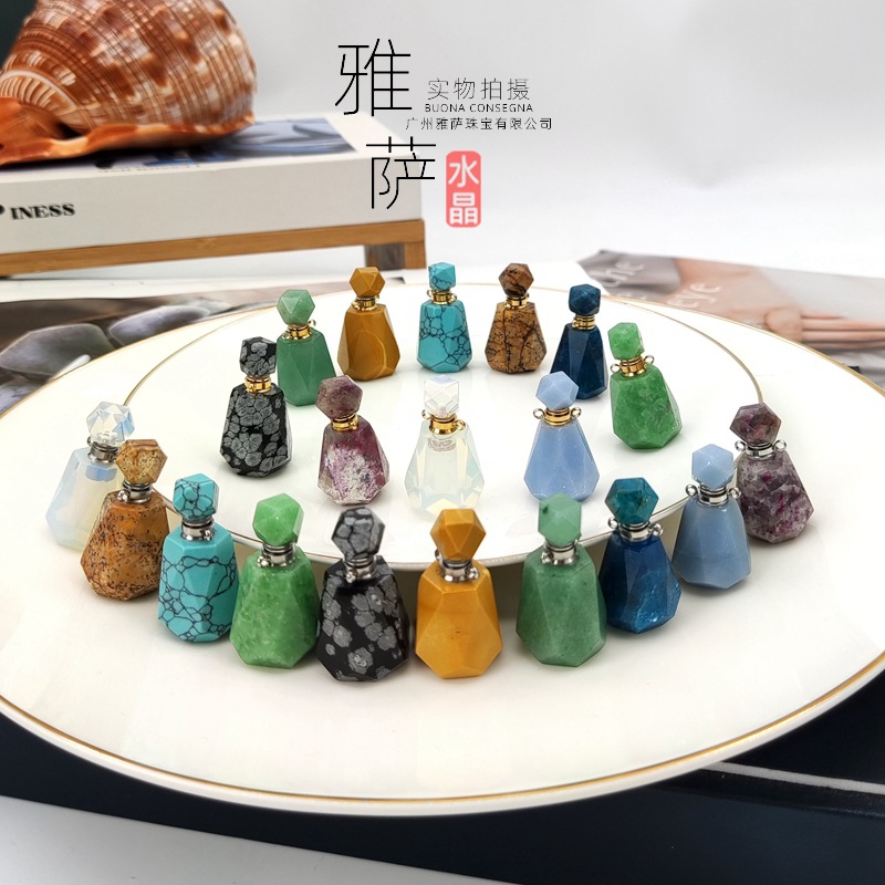 新商品天然水晶香水瓶七色蛍石多面体表面精油瓶ペンダントクロスボーダーアクセサリー