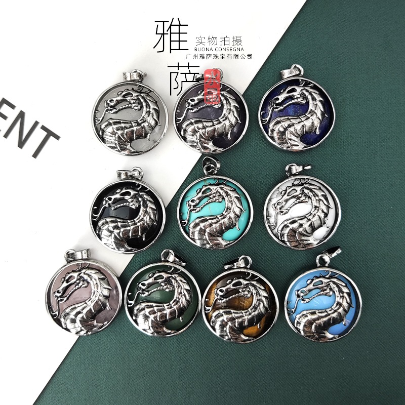 外国貿易水晶アクセサリー卸売り個性復古維京龍ペンダント天然石オパールネックレス部品卸売り