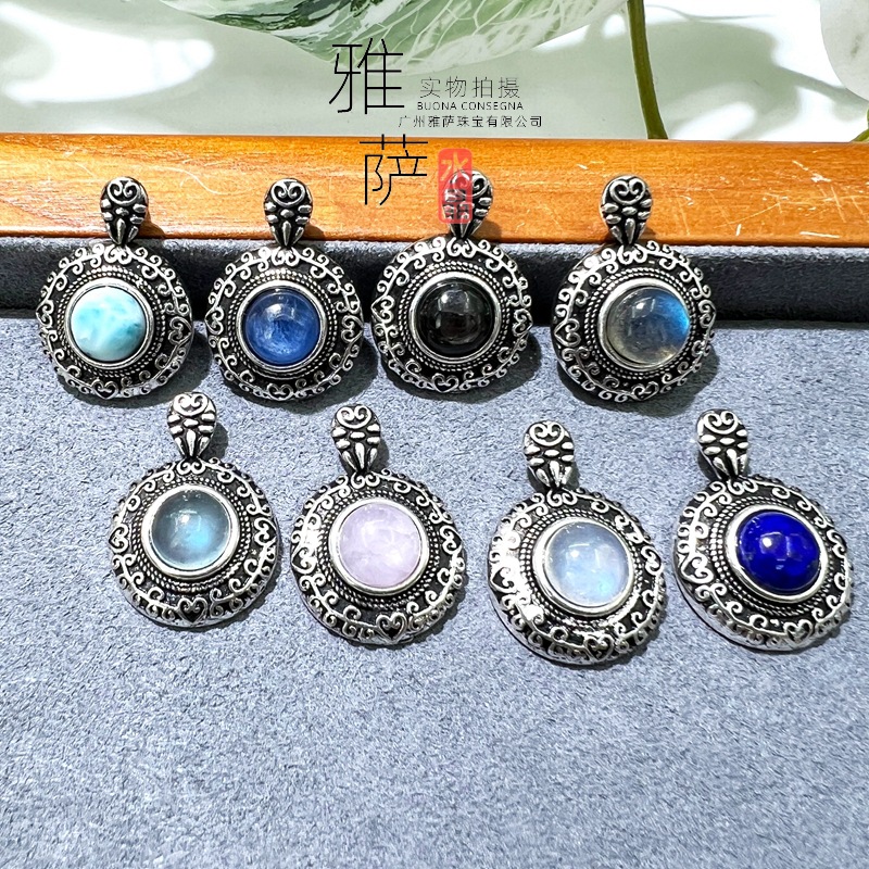 欧米のレトロな個性の海藍宝所とペンダントの丸いトートは何もないブランドの金運石の民族風の装飾品の卸売りを象眼します。