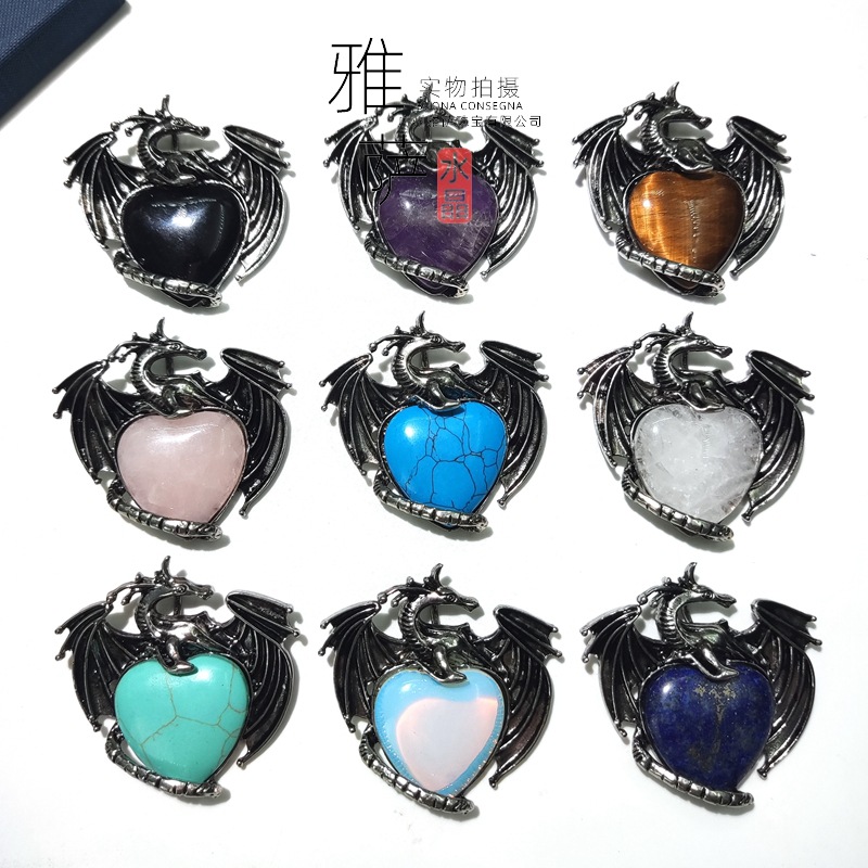 外国貿易水晶アクセサリー卸売り個性復古維京龍ペンダント天然石オパール粉水晶ネックレス