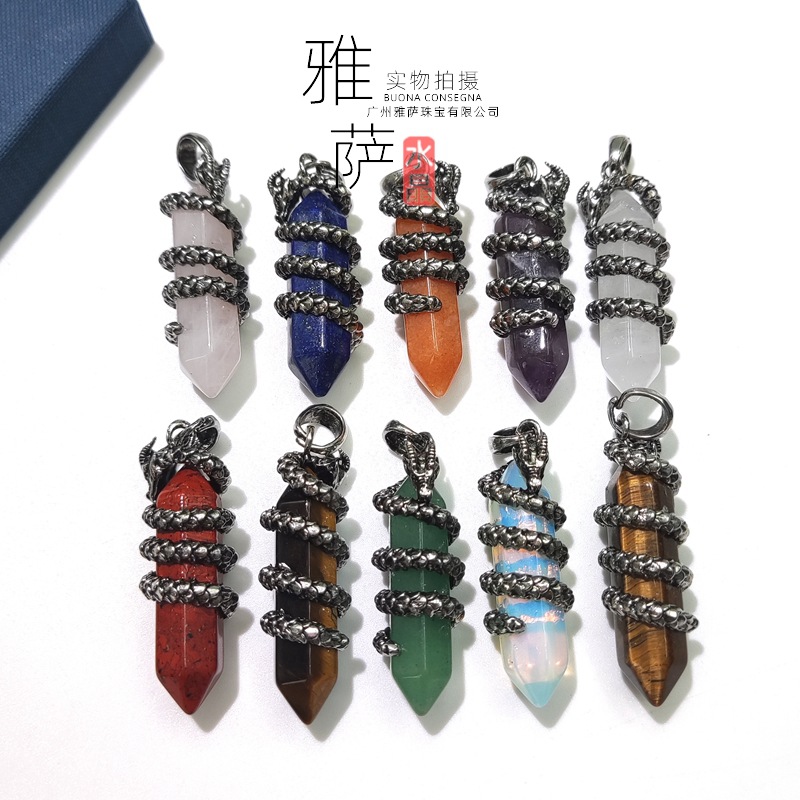 七色水晶六角柱巻き龍ペンダント白水晶紫水晶復古銅巻き線六角柱アクセサリー