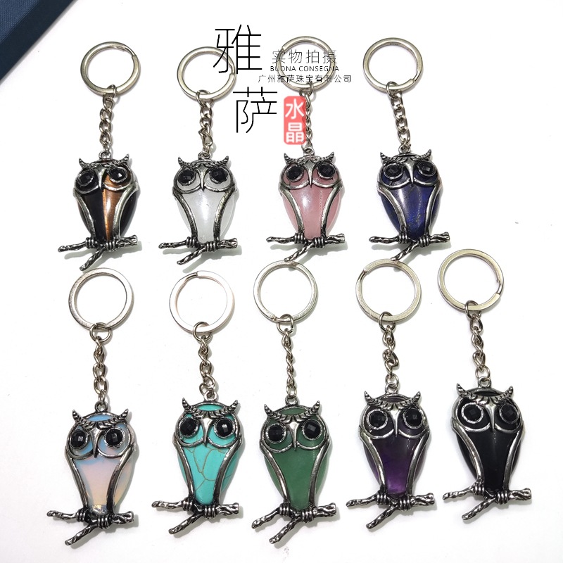 クロスボーダーヴィンテージレトロ手饰り欧米ピンククリスタル古风キーチェーンデザイン感フクロウ車載ペンダント