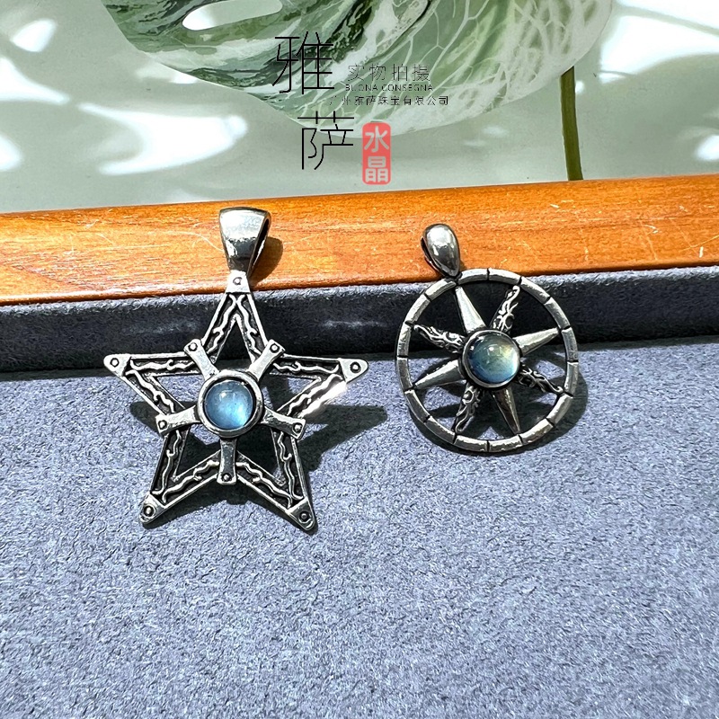 天然水晶拉長石ペンダント五角星古銀ネックレスアニメ周辺アクセサリーWishクロスボーダー卸売り