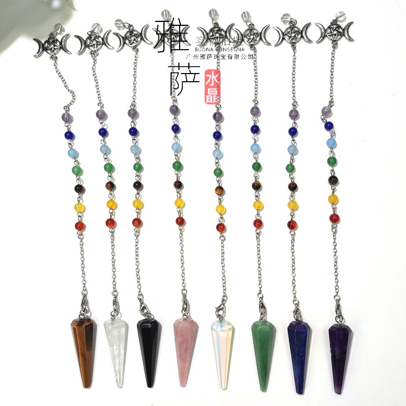 新商品クロスボーダー外国貿易ジュエリー卸売り天然石六角錐型置物星月七色チャクラハンマー水晶