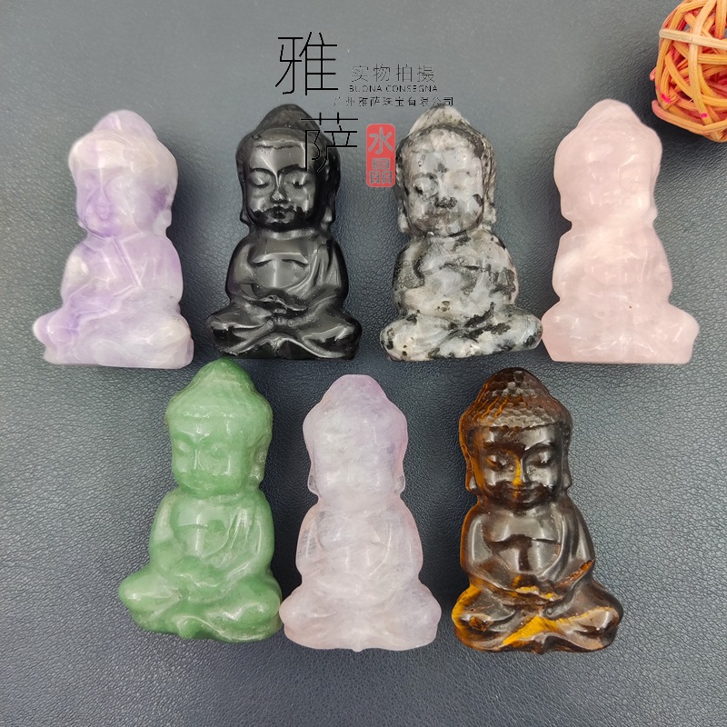新商品の粉水晶彫刻品の顔写真天然原石工芸品の釈迦の摩尼玉の置物