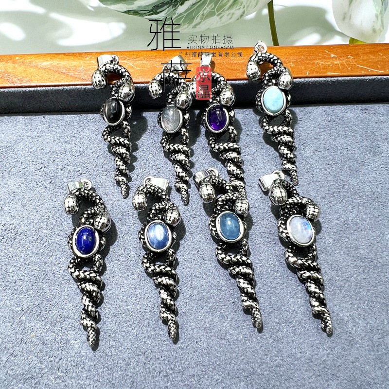 レトロ幻彩藍月光水晶蛇頭権杖ペンダント双蛇レトロ置物装飾品シンプル装飾クロスボーダー