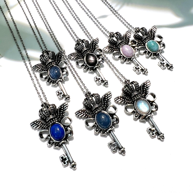 新商品欧米天然石ブルーラピスラズリ鍵ネックレスファッションジュエリーネックレスサファイア女性卸売り