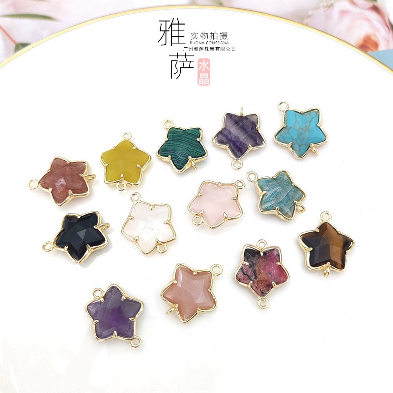 小さな星天然石小さな置物天然水晶ダブルリングペンダント五角星花ペンダントアクセサリー卸売